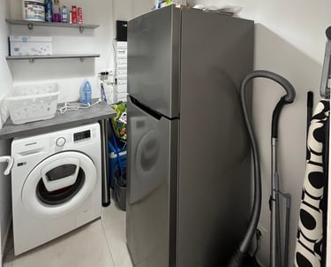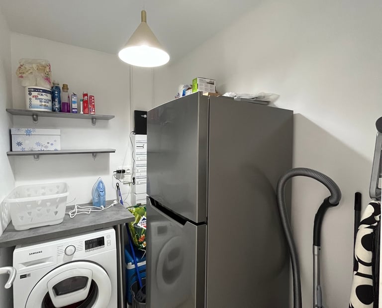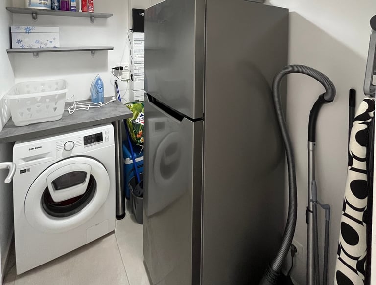 Buanderie avec lave-linge grande capacité, second frigo, lit parapluie et chaise bébé sur demande, draps et serviettes de toilette fournis.